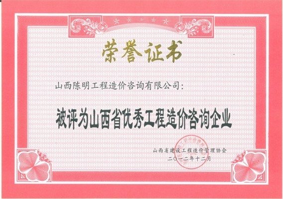 優(yōu)秀工程造價咨詢企業(yè)